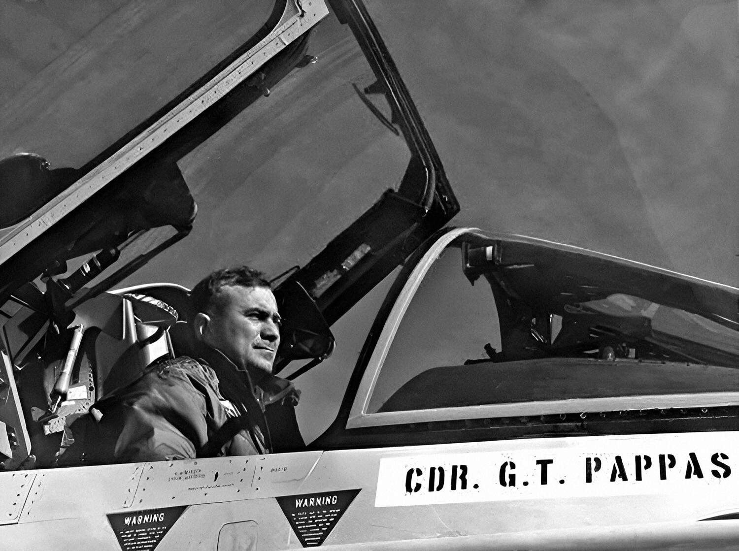 Commander Pappas in the cockpit of a VA-27 A-7A – U.S. Navy Photo