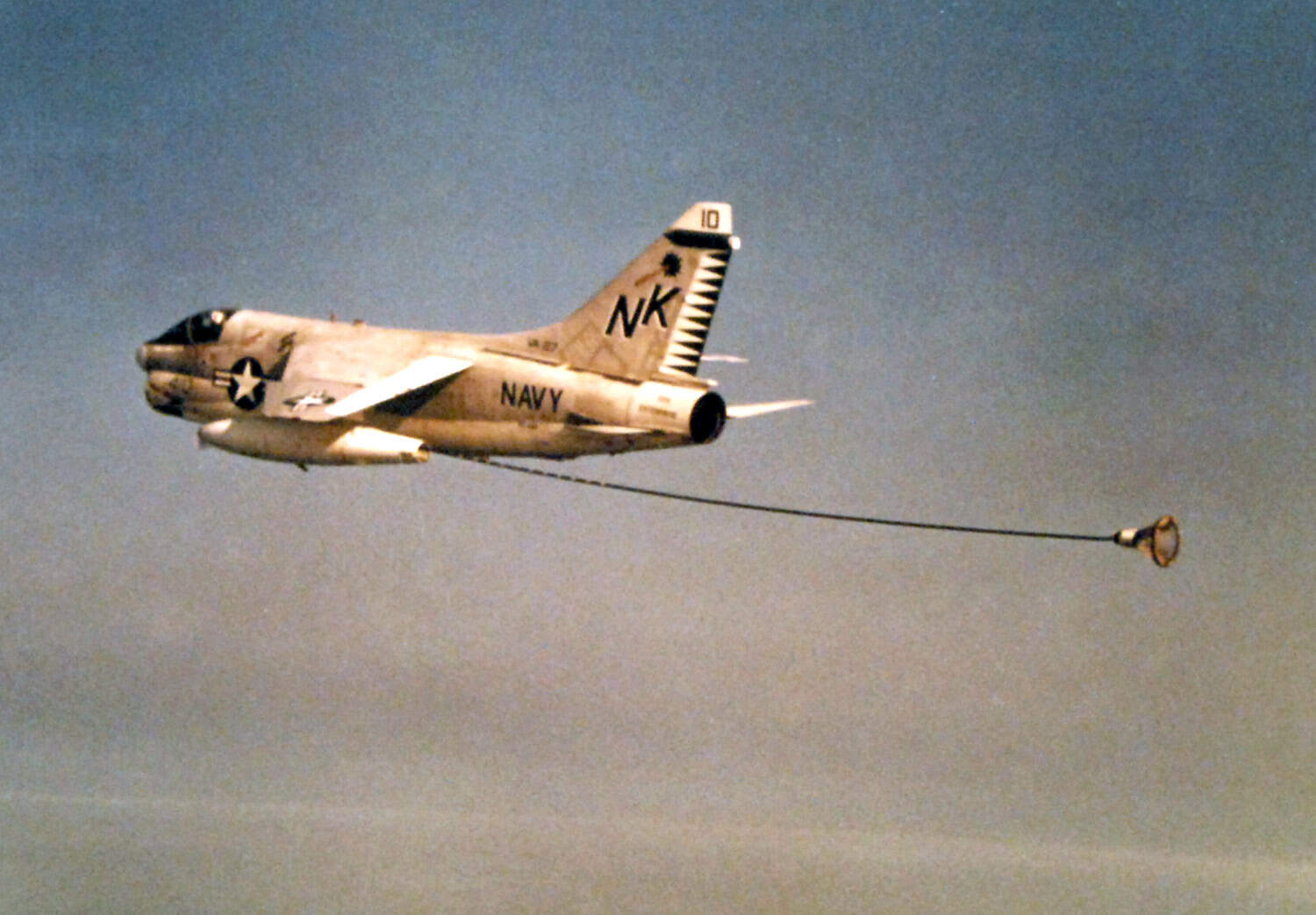 Another role it filled, one rather placid in nature, was that of aerial refueling. Equipped with underwing ‘buddy’ stores, many US Navy aircraft types, including the A-7, can act as tankers for other birds in the air wing.