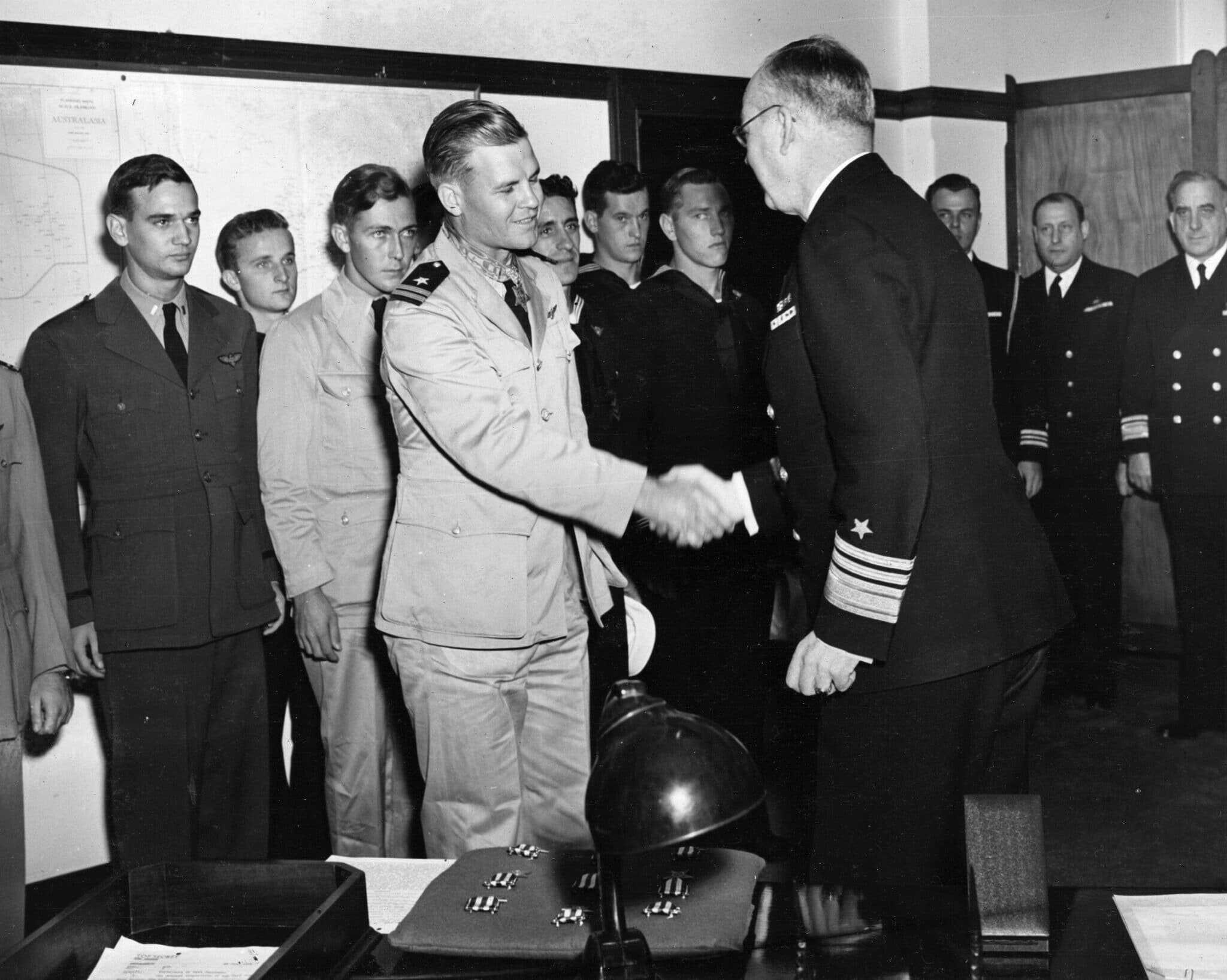 In September of 1944, Gordon and his crew were flown to Brisbane, Australia. There, Vice Admiral Thomas C. Kinkaid awarded the Congressional Medal of Honor to LT Nathan G Gordon USNR and presented his entire crew with the Silver Star. Years later Gordon would say that a telegram from Admiral William F. “Bull” Halsey, mentioning his Kavieng Dumbo mission, would be one of his proudest memories. The telegram read, “Please pass my admiration on to that saga-writing Kavieng Cat crew. This rescue was truly one of the most remarkable feats of the war – Halsey”. Gordon went on to become an instructor pilot at NAS Jacksonville and was flying out of NAS Anacostia in Washington DC when the war ended.