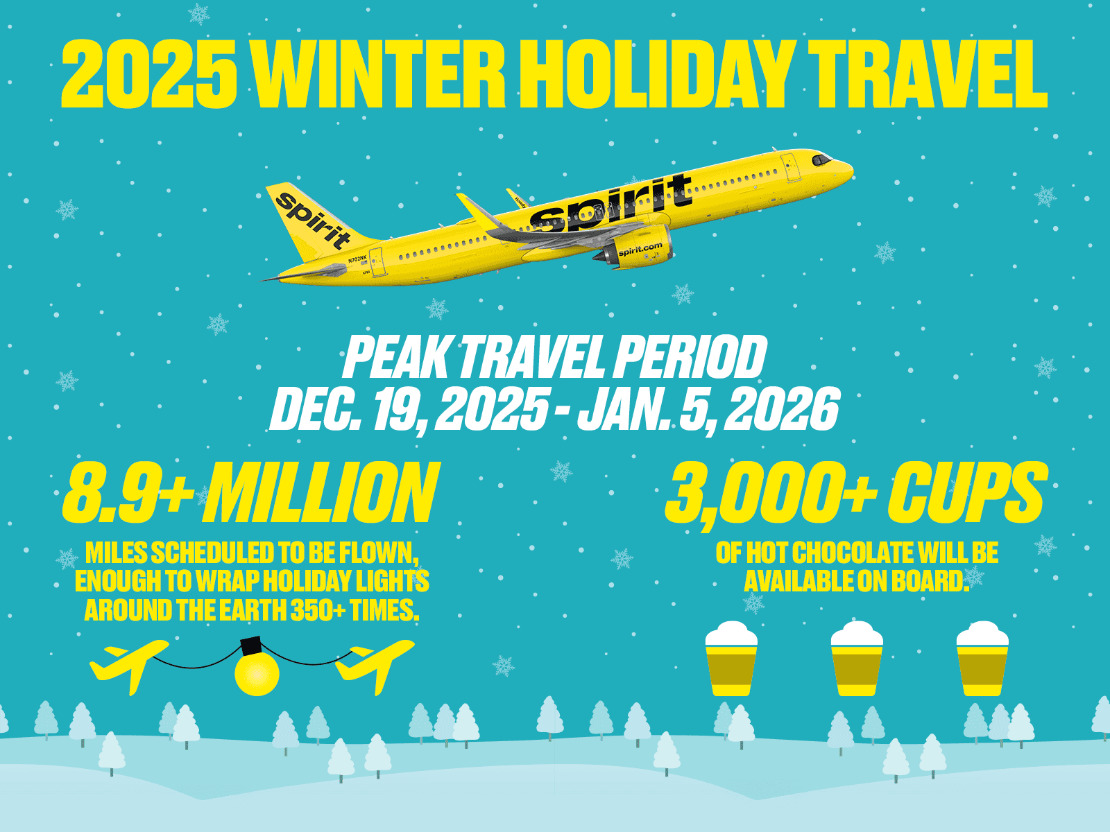 “Delivering the best value on travel means even more when it brings families and friends together for the holidays,” said Rana Ghosh, Senior Vice President and Chief Commercial Officer at Spirit Airlines. “We can’t wait to welcome our Guests on board this holiday season and continue connecting them to the people and places they love most in 2026.”