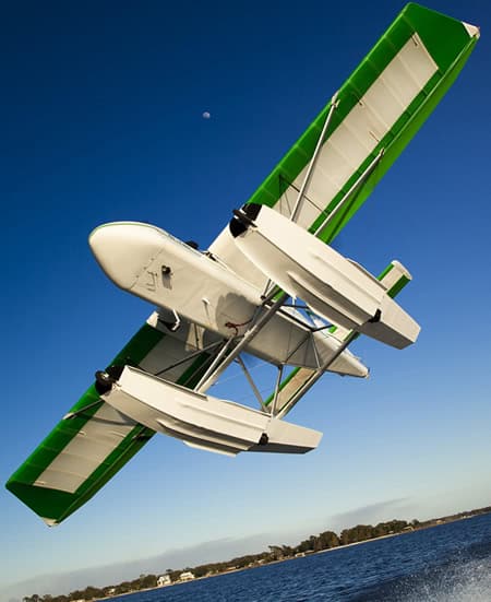 Lockwood air cam light sport aircraft with floats for amphibious operations. | image: aircam.com