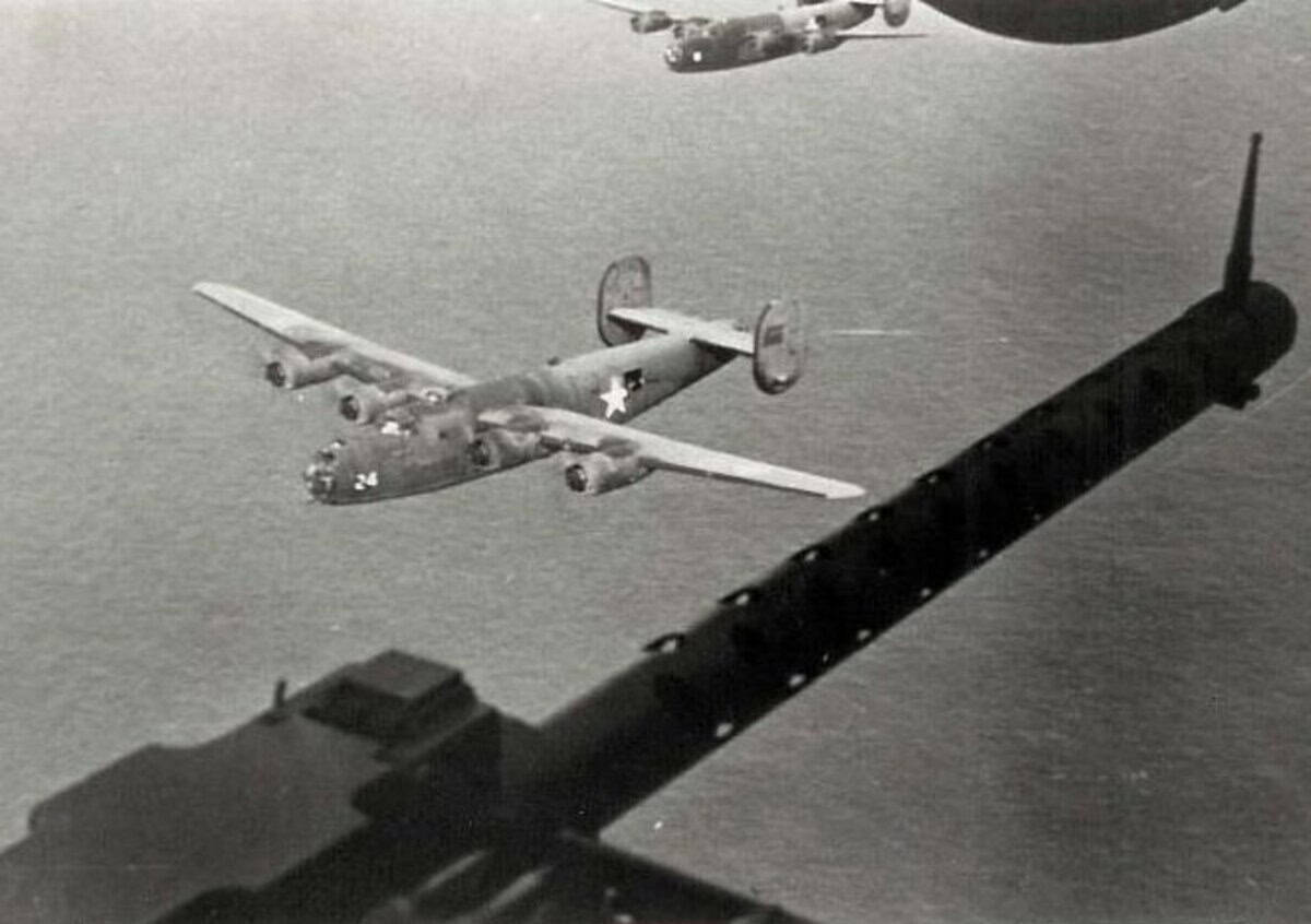 A ship that had descended to check for survivors almost collided with another B-24, fell behind, and was unable to regain formation. ‘Twas another blow to the mission, as this ship carried the force’s backup navigator.